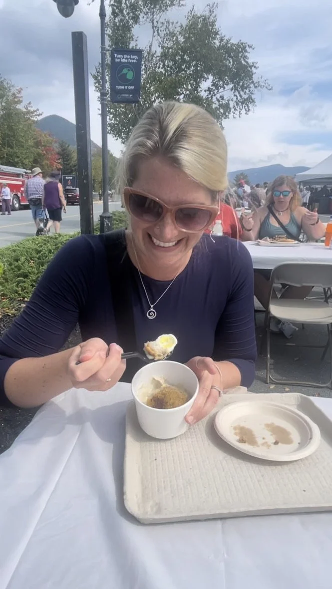 #16 – Diving into Scottish culture – For the past 3 years, my best friend, Katie, and I have gone to the Highland Games at Loon Mountain in NH. This event is near and dear to Katie, having Scottish heritage and fond memories of her dad participating in the heavy athletics and hurling the tree trunk they call a caber around. We have our routine, specific places we like to go and things we like to do. This year, my risk was to immerse myself more fully in the Scottish culture. Rather than get a hamburger, I tried a Scotch egg, and rather than take the gondola ride up to the top of the ski slope, we learned how to say sweet nothings to each other in Gaelic. In case you are curious, the Scotch egg was a soft-boiled egg coated in sausage and then battered, deep-fried, and served with sausage gravy on top. Not surprisingly, it was delicious. Our adventures in Gaelic were well worth the departure from our routine too – our teacher was a kind and earnest librarian from Vermont who had us all singing together in Gaelic by the end. This whole festival was another terrific example of the power of community. Not everyone who attends the Highland Games has Scottish heritage, but for the duration of that festival, we are absolutely all Scottish.